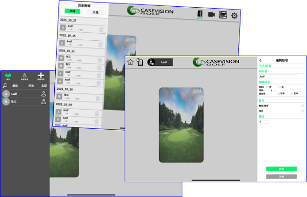 CasevisionGolf(凯视力成高尔夫教学训练APP)是与iTrack配套使用的APP,涵盖了高尔夫挥杆和推杆的教学训练内容,一方面它是高尔夫教练教学的利器,可以帮助他们迅速实现高尔夫教学的数据化、智能化。另一个方面,也是高尔夫球手训练的好帮手,实现了有反馈的闭环训练,通过视频、数据、曲线,实时、同步地给球手全面反馈挥杆和推击情况,高效快速地帮助球员优化和纠正自己的挥杆推杆动作。